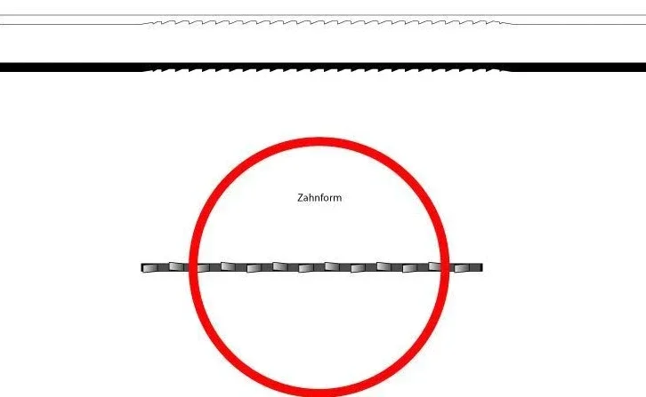 tandvorm: breed getand en gezet. Dit resulteert in een positief snijeffect en probleemloos bochtsnijden.